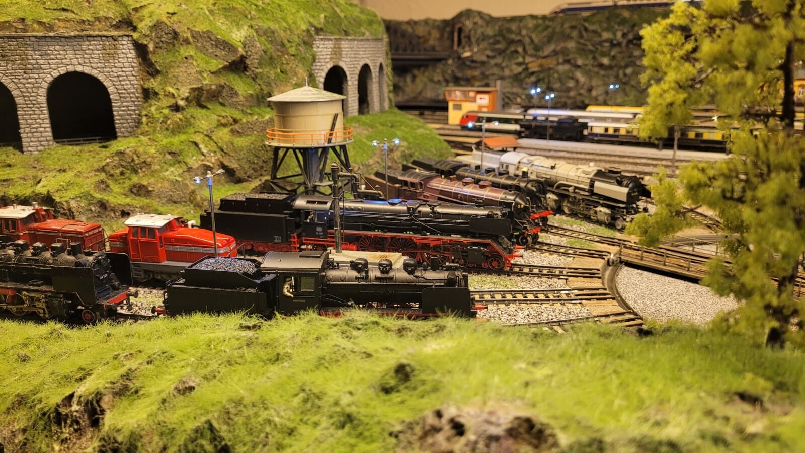 Wichtig ist, dass man ein paar Versuche macht mit verschiedenem Bauschaum, auch mit dem billigsten, um die unterschiedlichen Eigenheiten kennen zu lernen. Konsistenz, Aufsprühen, nachträgliche Ausdehnung, Trockenzeit, Endfestigkeit, Bearbeitung, Oberflächenbehandlung (Gips, Farbe, Begrasung usw). Es ist möglich, grössere Flächen zu überspannen und schäumen, aber auch ganze Berge (Rohform) mit Besenstiel oder Stützen drunter, aussen einschneiden, die Einschnitte mit Kabelbindern zusammenklammern und erst mal dick schäumen. Nach Trocknung und Ausdehnung Gebirge grob in Form schäumen und nach Trocknung nachbearbeiten (von Hand, mit Cutter, Brotmesser, Schmelzschneider) und übergipsen oder -malen, begrasen, bepflanzen usw.